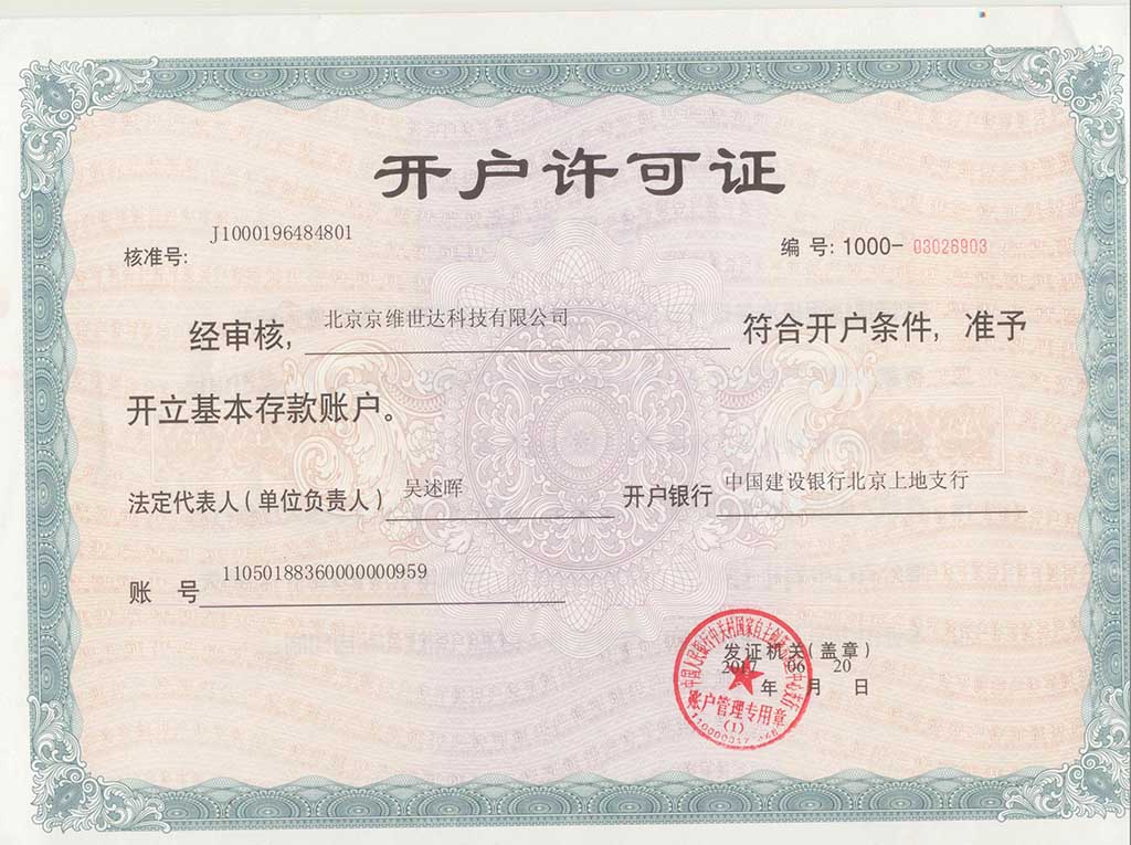 上一篇京维世达给大家介绍了营业执照的相关知识,是不是获益匪浅呢。下面给大家介绍一下开户许可证的相关知识。下一篇京维世达给大家介绍的相关知识,让我们尽情期待吧。